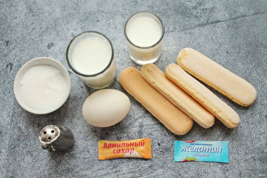 Подготовьте все необходимые ингредиенты для приготовления шарлотки с савоярди.