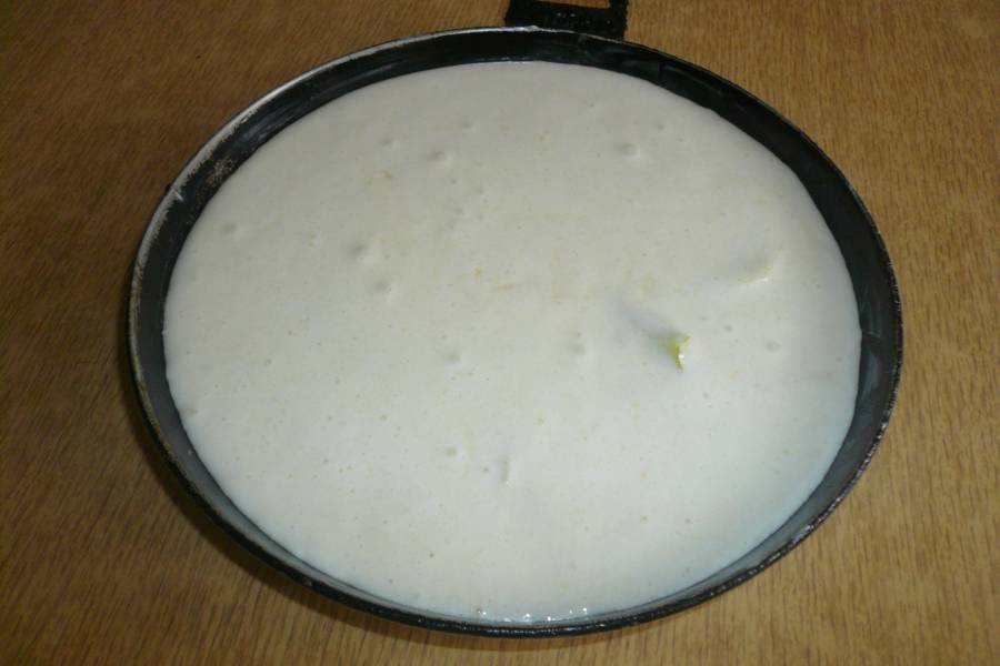 И заливаем тестом, оно получится довольно густое. Ставим в разогретую до 180 градусов духовку на 30 минут.