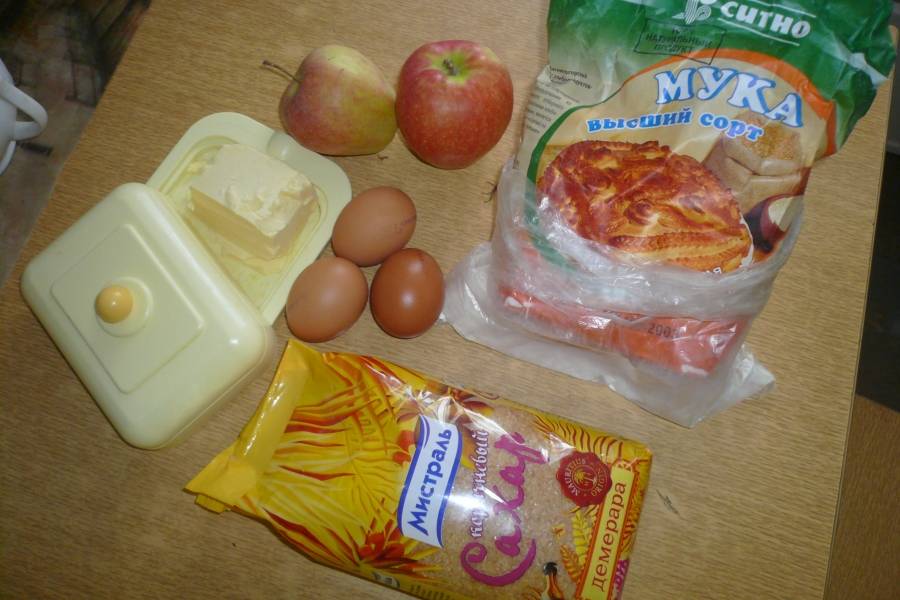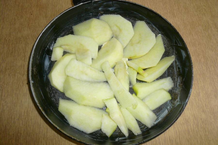 Яблоки чистим от семян и кожуру, даже если яблоки садовые и свои, кожура в пироге не будет вкусной:) Нарезаем яблоки крупными дольками, чем яблок больше, тем вкуснее получится пирог. Форму смазываем сливочным маслом. Укладываем толстым слоем яблоки.