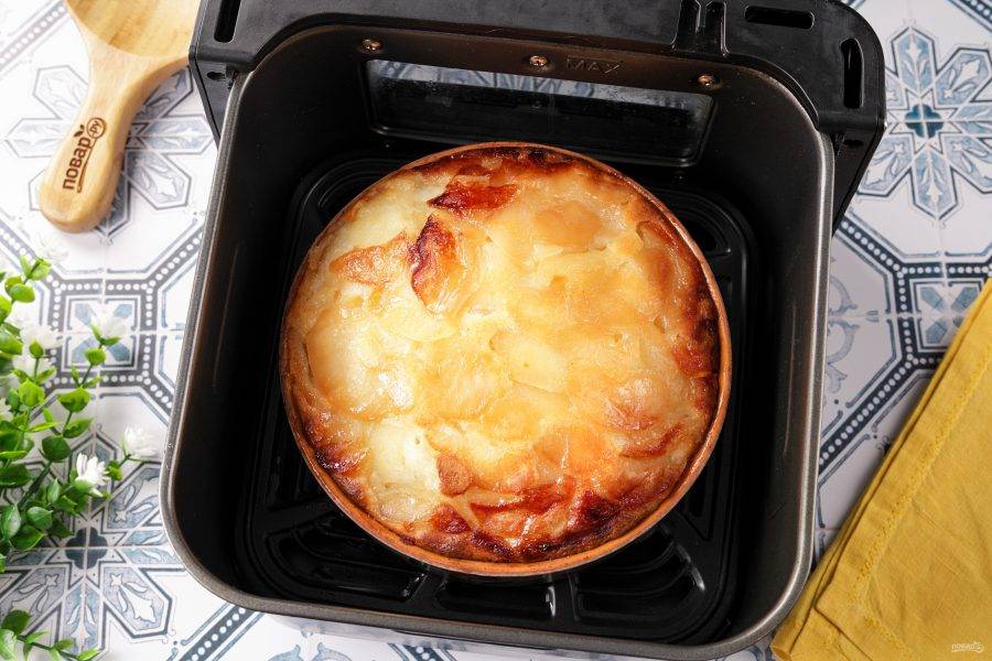 Шарлотка с яблоками в аэрогриле готова. Перед подачей можно слега присыпать сахарной пудрой. Приятного аппетита!