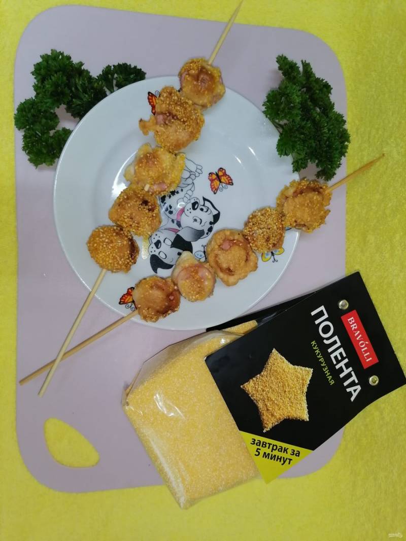 Шашлычки из сосисок обжаренные в поленте "Bravolli"