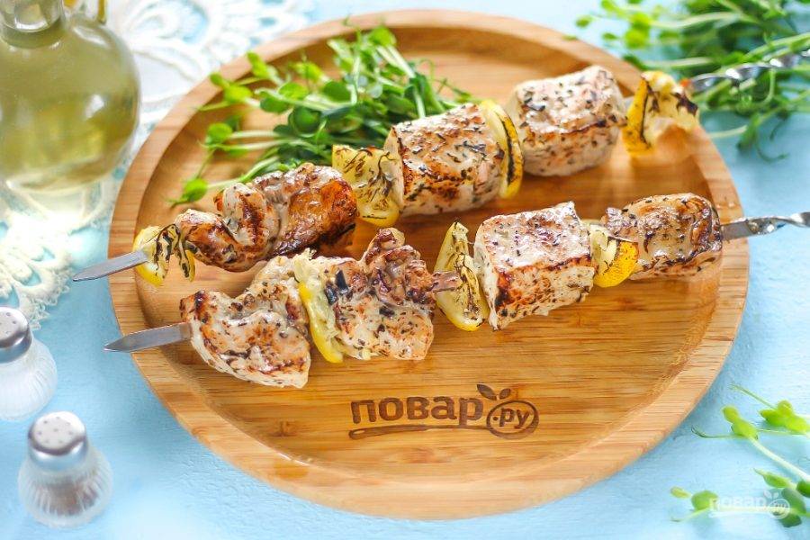 Разожгите угли в мангале или на гриле, дождитесь хорошего жара и поместите шампура на решетку. Обжарьте буквально 10-15 минут — мясо уже отлично пропитано, так что будет жариться очень быстро.