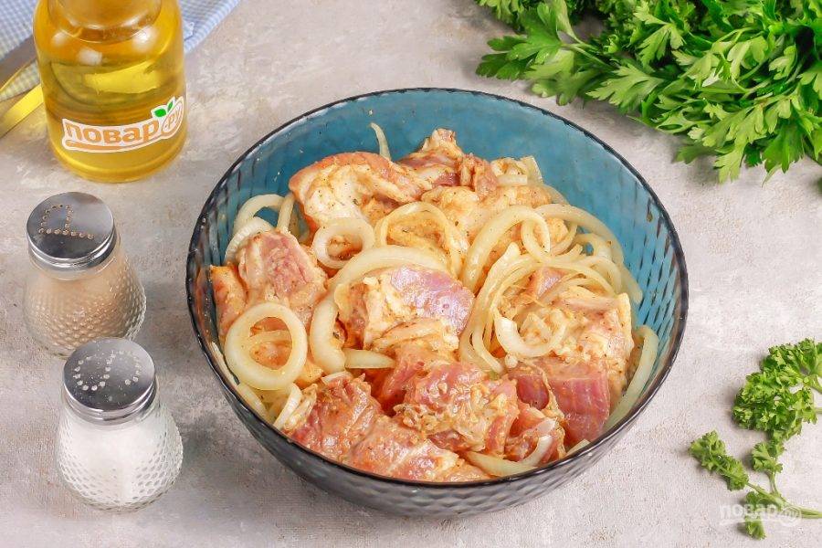 Оставьте на 1-2 часа для маринования при комнатной температуре. Если шашлык запланирован на более позднее время, то поместите мясо в холодильник. Но обязательно достаньте мясо за полчаса до начала обжаривания, чтобы оно прогрелось.
