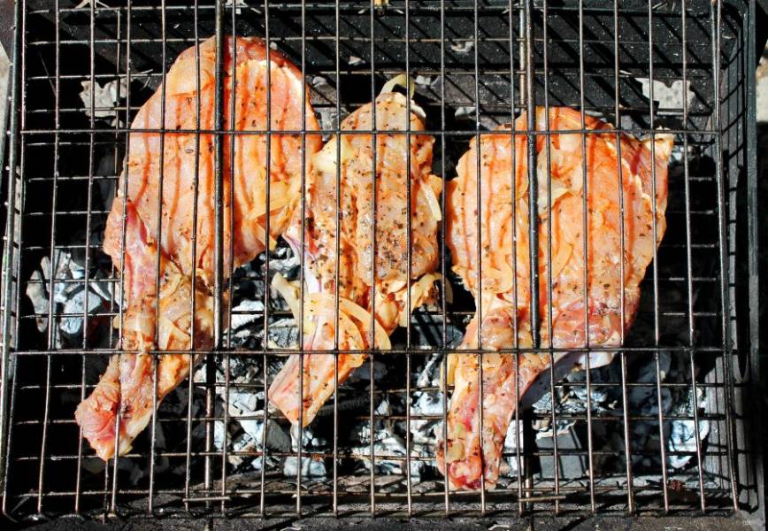 В мангале подготовьте угли для приготовления шашлыка из свиной корейки по-армянски. Выложите корейку на решетку и готовьте над углями в течение 15-20 минут до готовности. При этом решетку с шашлыком нужно перевернуть несколько раз и следить, чтобы не разгорался огонь. Готовый шашлык снимите с огня и сразу подавайте к столу.