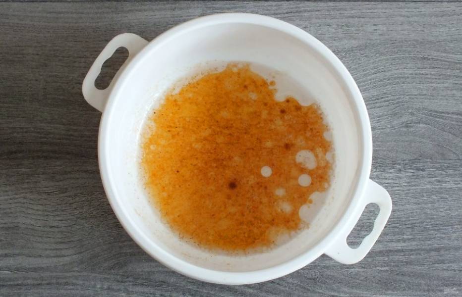 В чаше смешайте растительное масло, ликёр, паприку, специи для мяса, соль. Перемешайте.