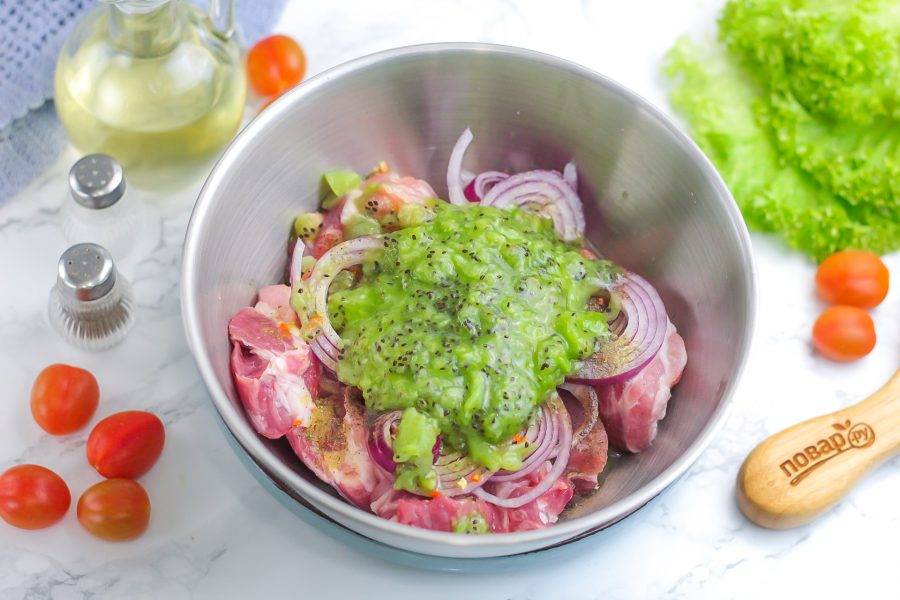 Вы удивитесь тому, насколько вкусным получается шашлык, замаринованный в киви. Да-да, именно в киви — фруктовые кислоты придают мясу яркий вкус, легкую кислинку и сладость. Маринуйте не менее 1 часа!