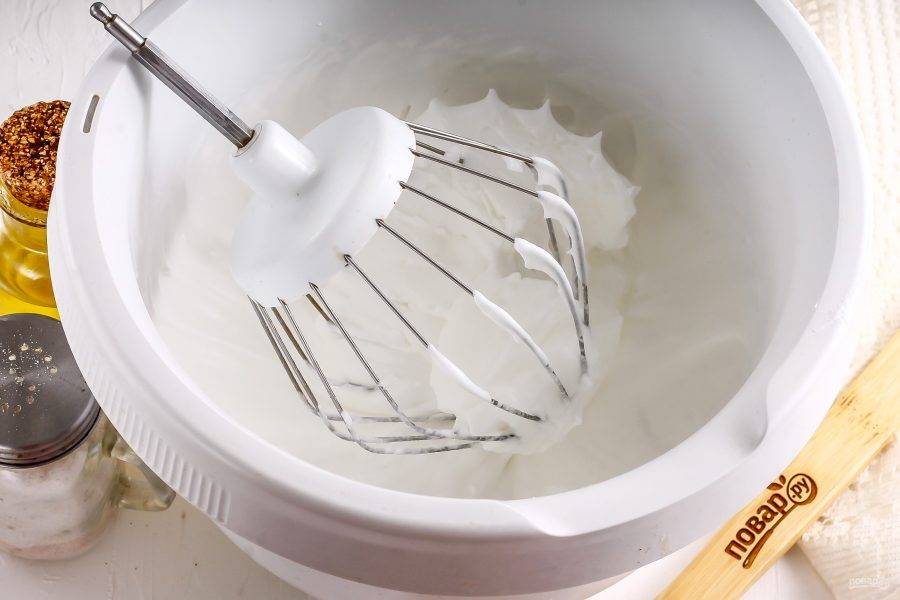 Белки должны взбиться до белых пиков, но старайтесь их не перевзбить.
