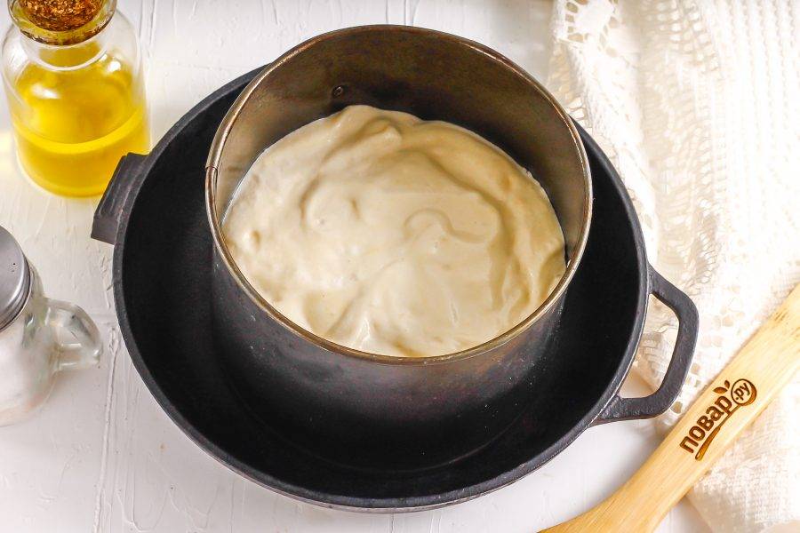 Смажьте форму растительным маслом и выложите в нее приготовленное тесто. Отправьте форму в духовку на 30 минут.
