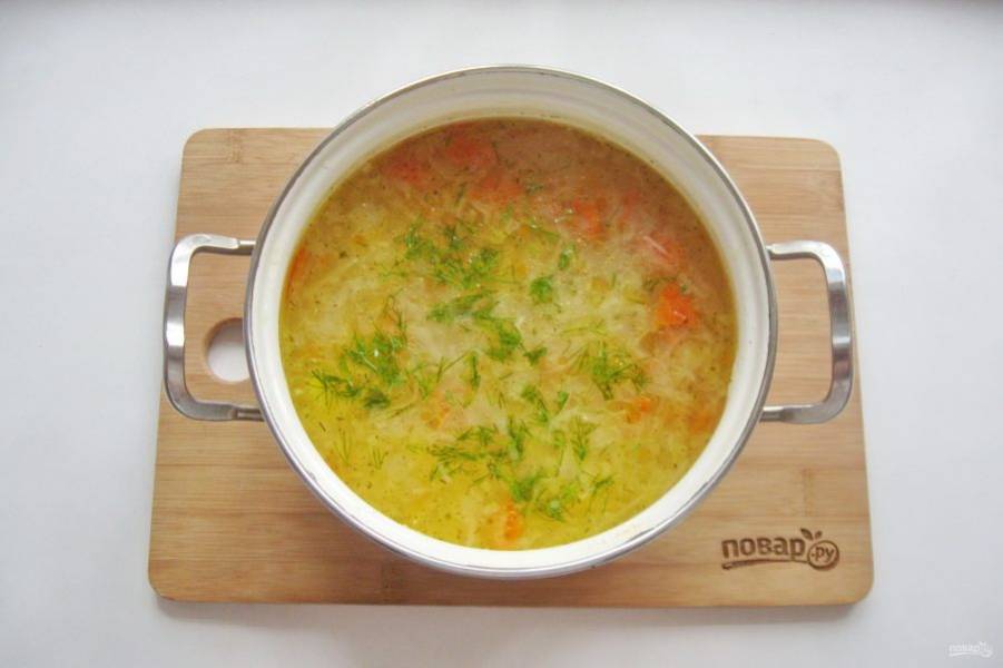 Щи с квашеной капустой и пшеном готовы. Подавайте к столу.