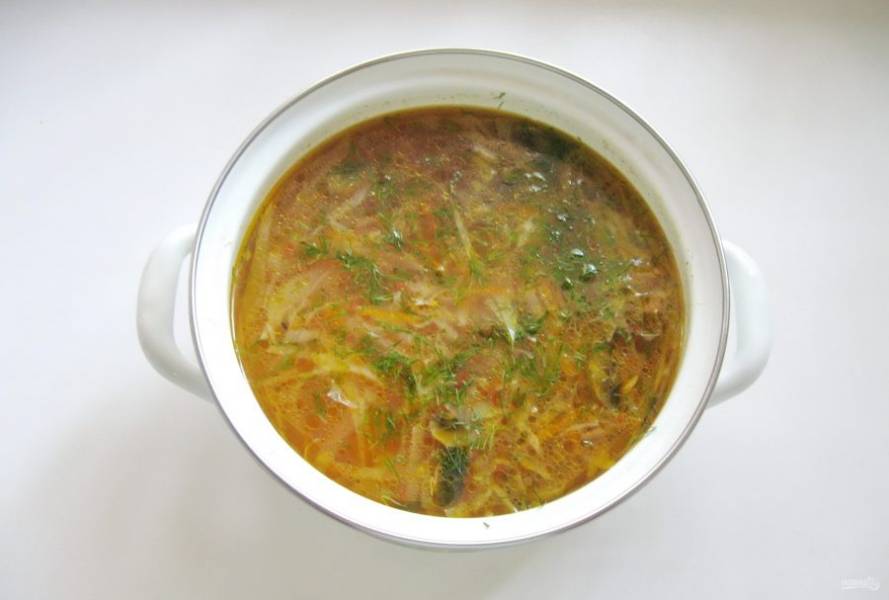 Ароматные, вкусные щи готовы. Подавайте на первое в обед.