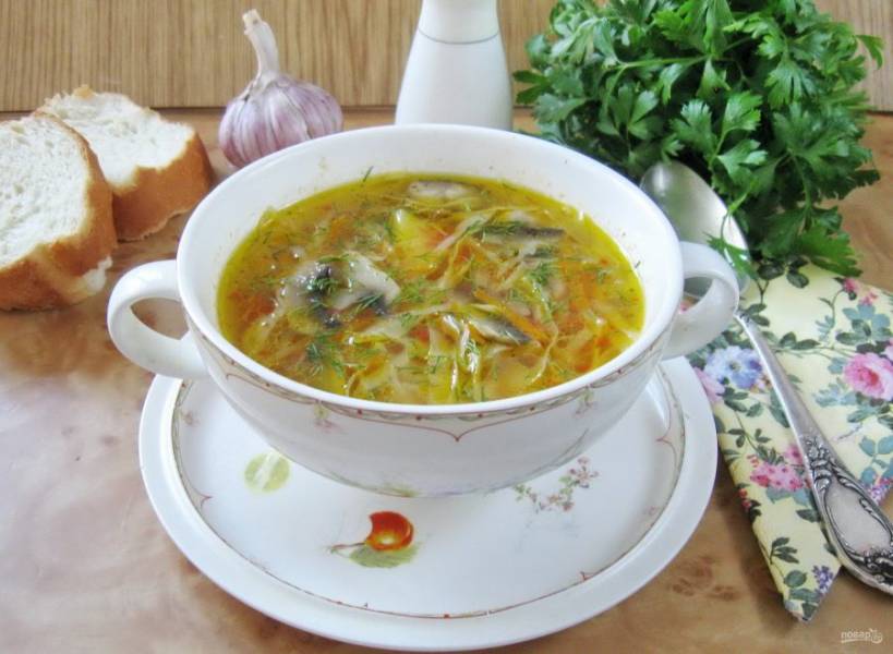 Щи наряду с борщом - одно из самых популярных первых блюд на нашем обеденном столе. Сегодня у нас они на курином бульоне с шампиньонами. Полезно, вкусно и сытно.