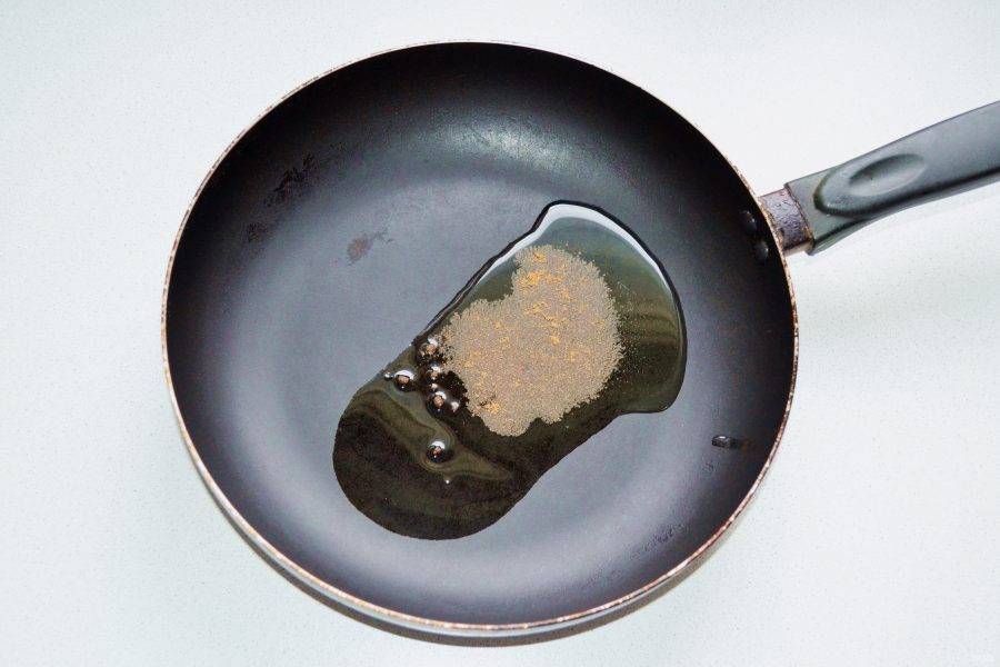 Параллельно соедините растительное масло с острым красным перцем и прогрейте.