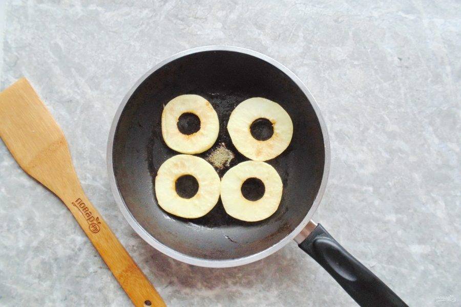 Обжаривайте яблоки на масле с обеих сторон 3-5 минут.