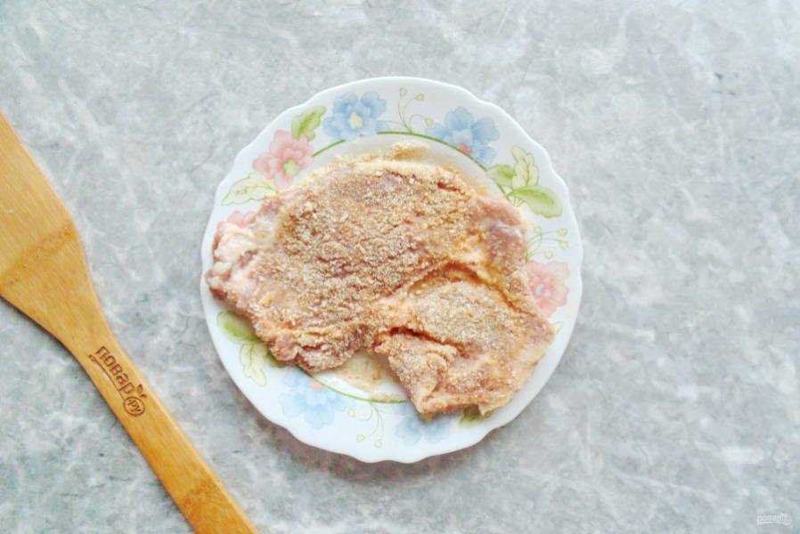 Мясо вымойте и промокните бумажным полотенцем. Выложите на разделочную доску и хорошо отбейте с обеих сторон.