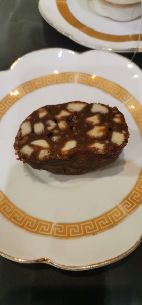 На пищевую пленку выложите часть сладкой массы, плотно заверните её, как колбаску. У меня получилось три небольших колбаски. Края свяжите ниткой плотно, чтобы колбаса приняла форму, и отправьте её на 3-4 часа в холодильник. Спустя это время колбаска будет готова!