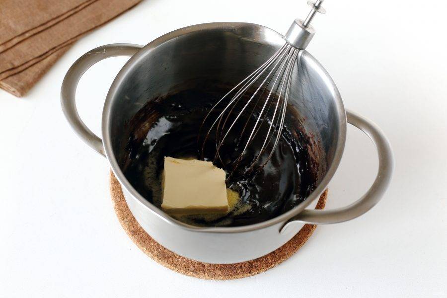 Добавьте сливочное масло и перемешайте до полного его растворения.