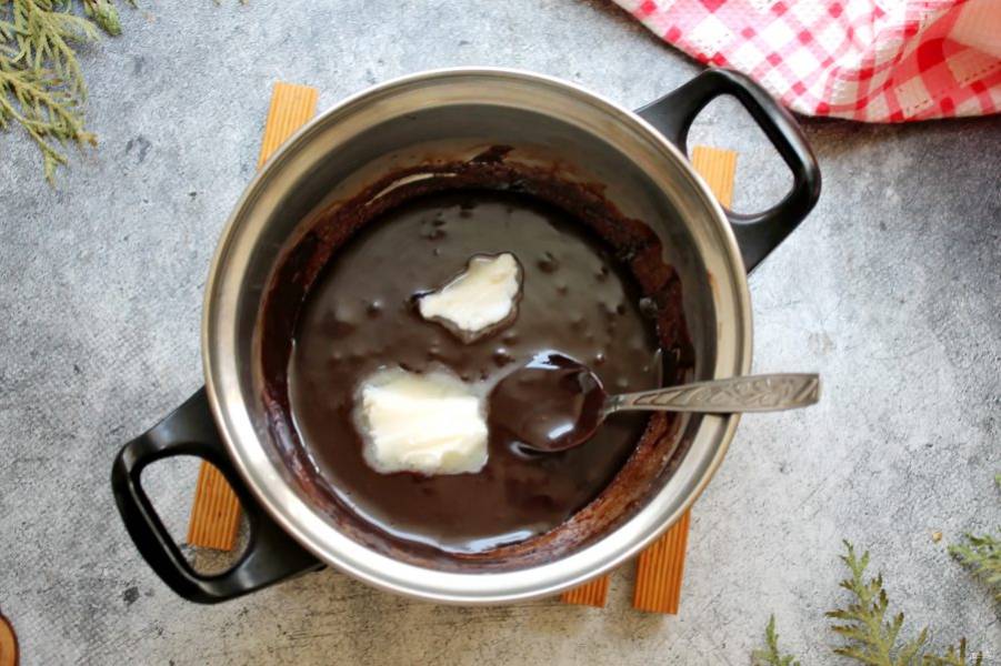 Снимите кастрюлю с огня, добавьте сливочное масло и перемешайте до однородности.