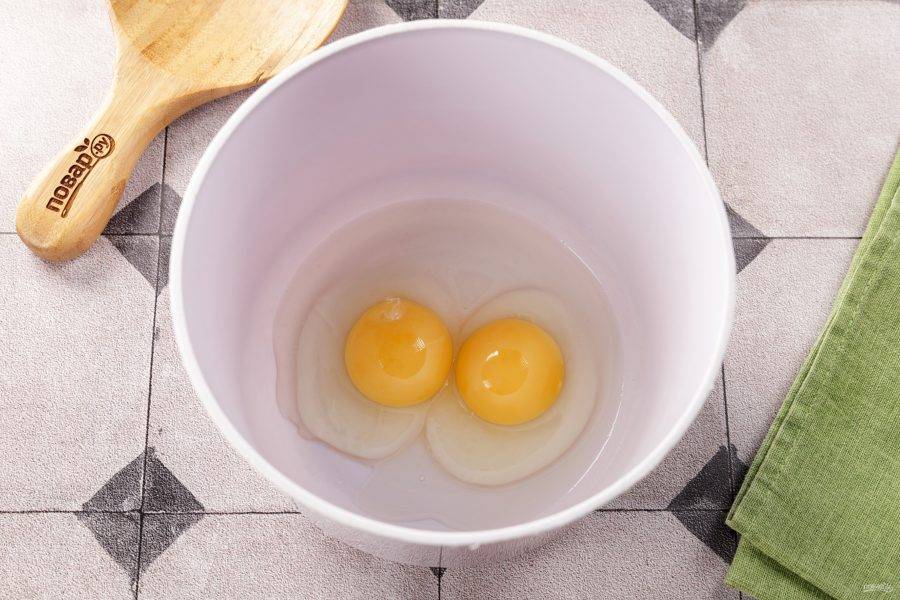 Разбейте яйца в глубокую миску.