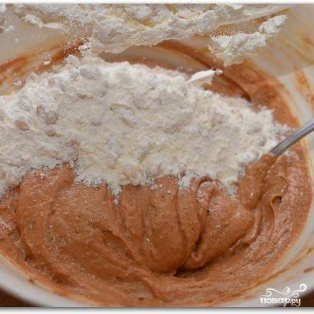 Добавляем в смесь растопленный шоколад и ванильную эссенцию. Взбиваем до однородности.