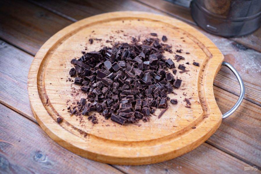 Шоколад нарежьте маленькими кусочками.