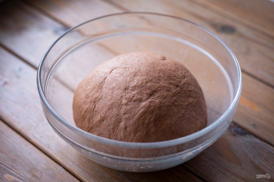 Готовое тесто получается мягким и к рукам не прилипает. Тесто округлите в миске, накройте кухонным полотенцем, оставьте в покое на 1 час для поднятия.