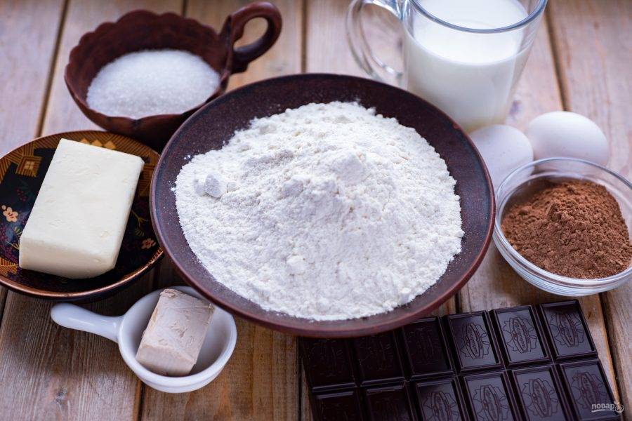 Удобно все ингредиенты выложить на стол перед началом приготовления. Молоко должно быть теплым (35-37 градусов).
