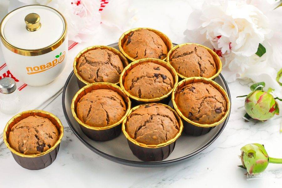 Созовите родных к столу на дегустацию десерта. Посмотрите, какими пышными и пористыми могут быть шоколадные маффины. Приятного вам аппетита!