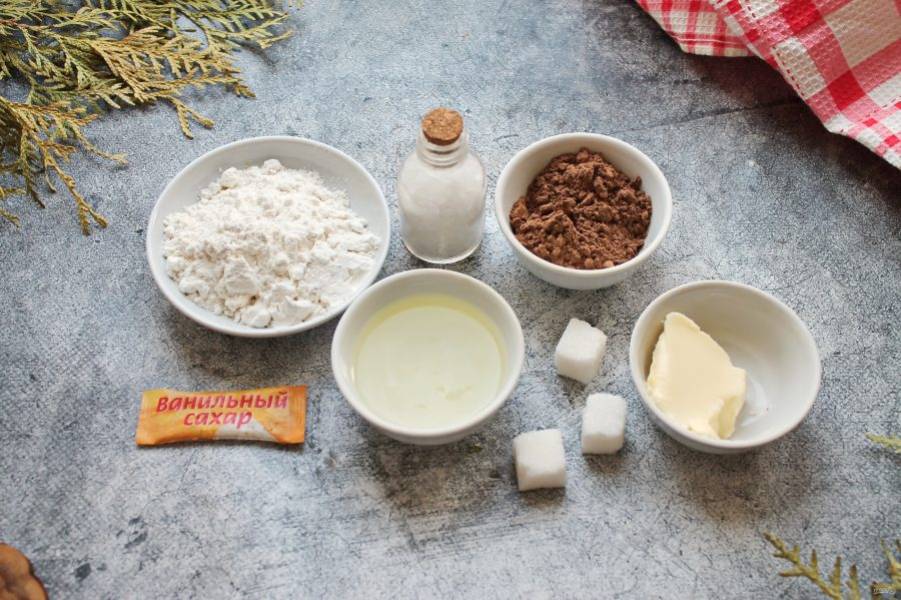 Подготовьте все необходимые ингредиенты для приготовления шоколадного бисквита на белках. Сливочное масло растопите и остудите.