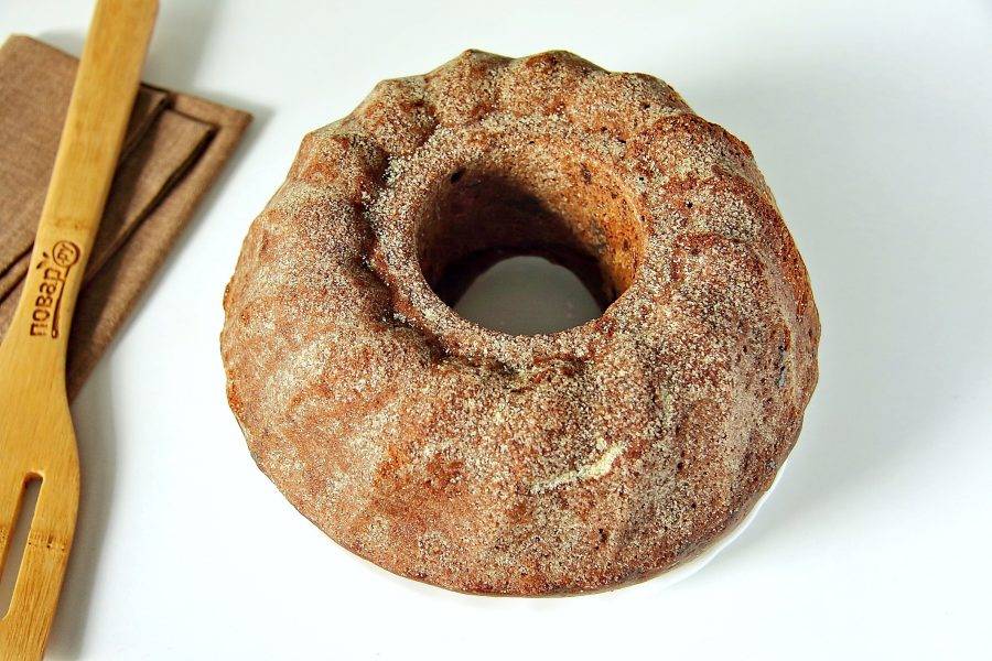 Выпекайте в разогретой до 180 градусов духовке около 30-40 минут. Готовность проверяйте деревянной шпажкой. Готовому шоколадному кексу дайте немного остыть в форме, затем аккуратно извлеките и переложите на тарелку.