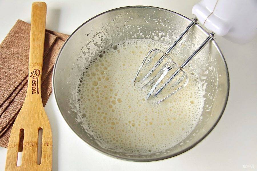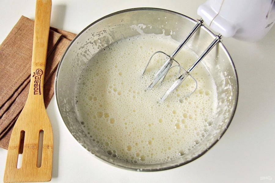 Добавьте кефир и взбейте все еще раз.