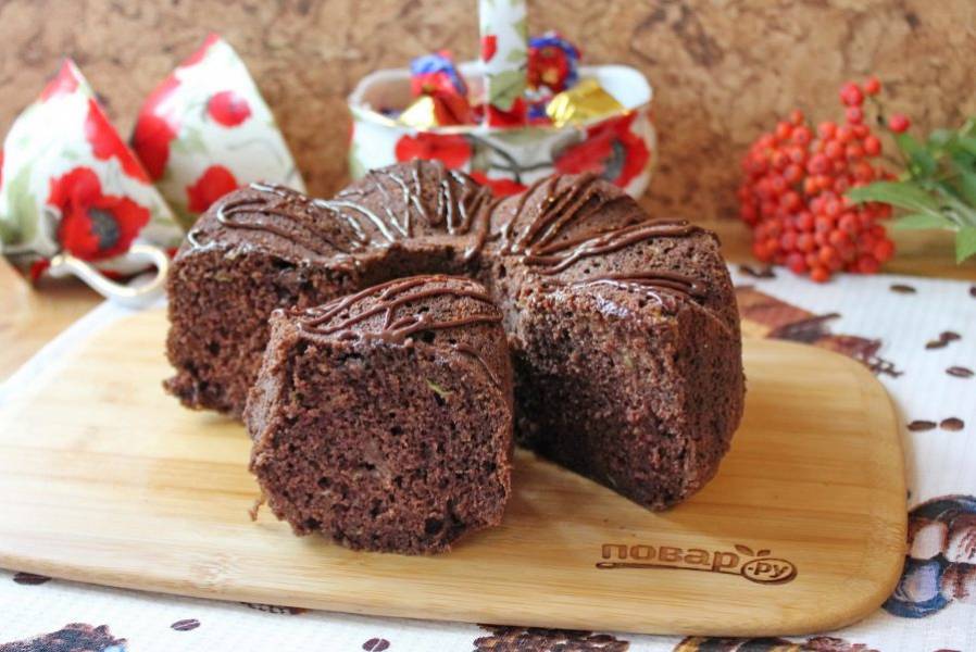 Шоколадный кекс с кабачком готов. Нарежьте и подавайте к чаю.