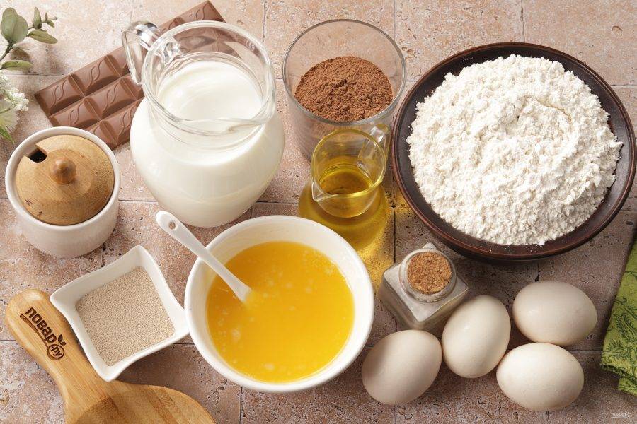 Подготовьте все ингредиенты по списку. Сливочное масло растопите и дайте ему немного остыть.