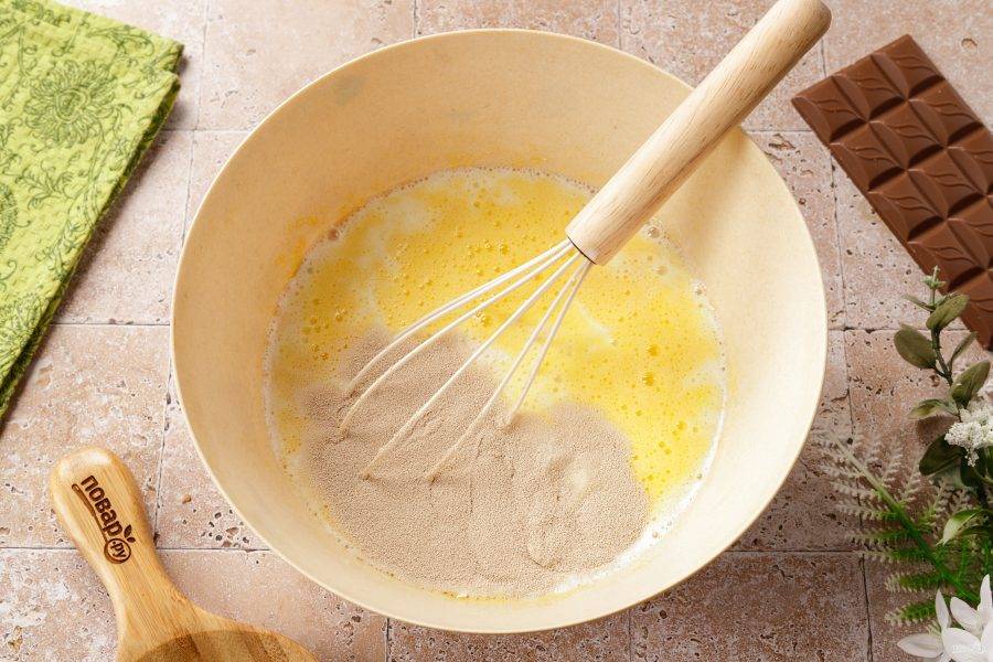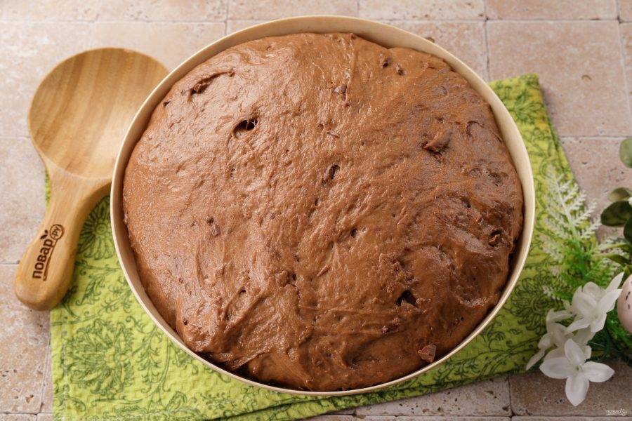 Накройте миску полотенцем и оставьте в тёплом месте на 1,5-2 часа или до тех пор, пока тесто не увеличится вдвое.