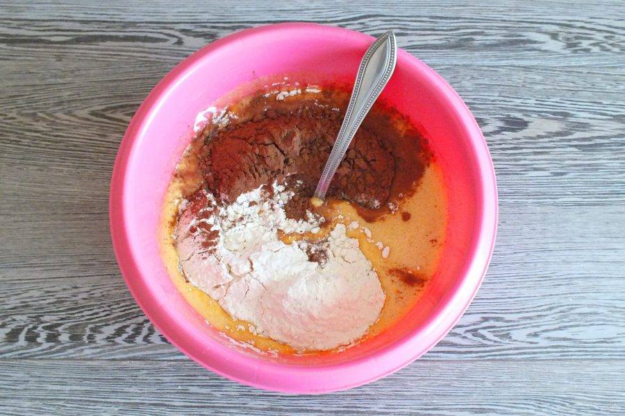 Добавьте муку, какао.