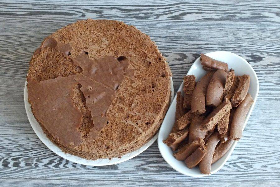 Охлажденные коржи подравняйте. Обрезки отложите.