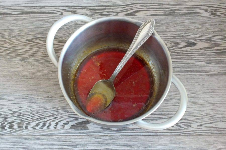 Масса начнет пузыриться. Размешивая, варите до карамельного цвета.