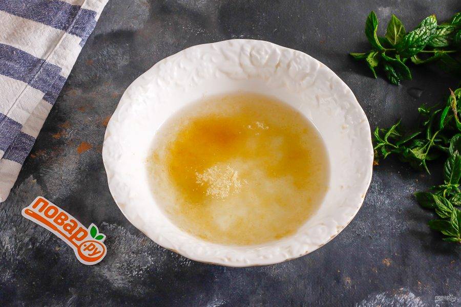 Вскипятите воду и растворите в ней желатин. Оставьте его на 5 минут для набухания и снова перемешайте.