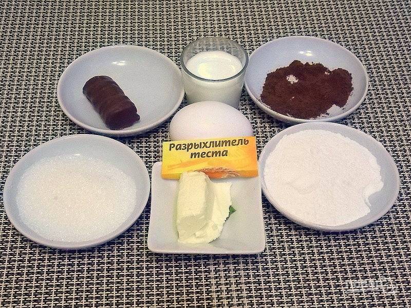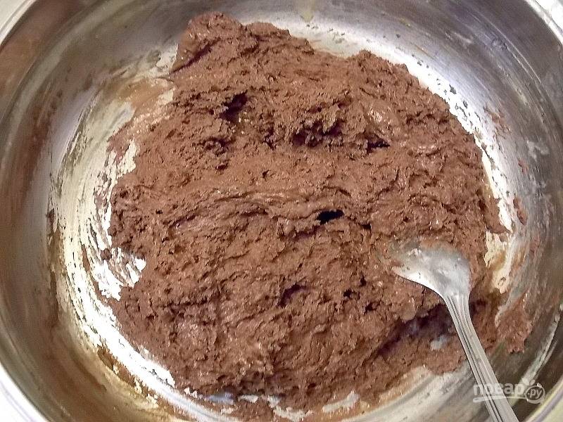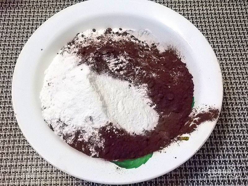 Смешайте муку, какао, разрыхлитель.