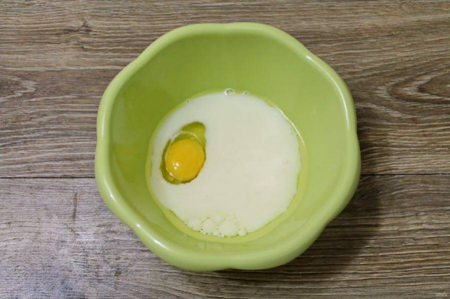 В другой миске смешайте до однородности молоко, растительное масло и яйцо.