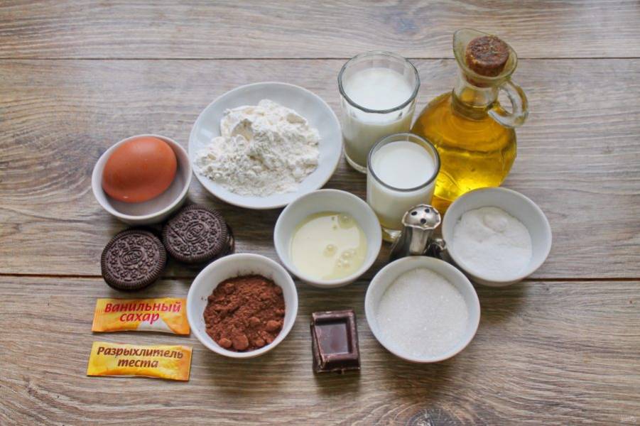 Подготовьте все необходимые ингредиенты для приготовления шоколадного торта "Орео".