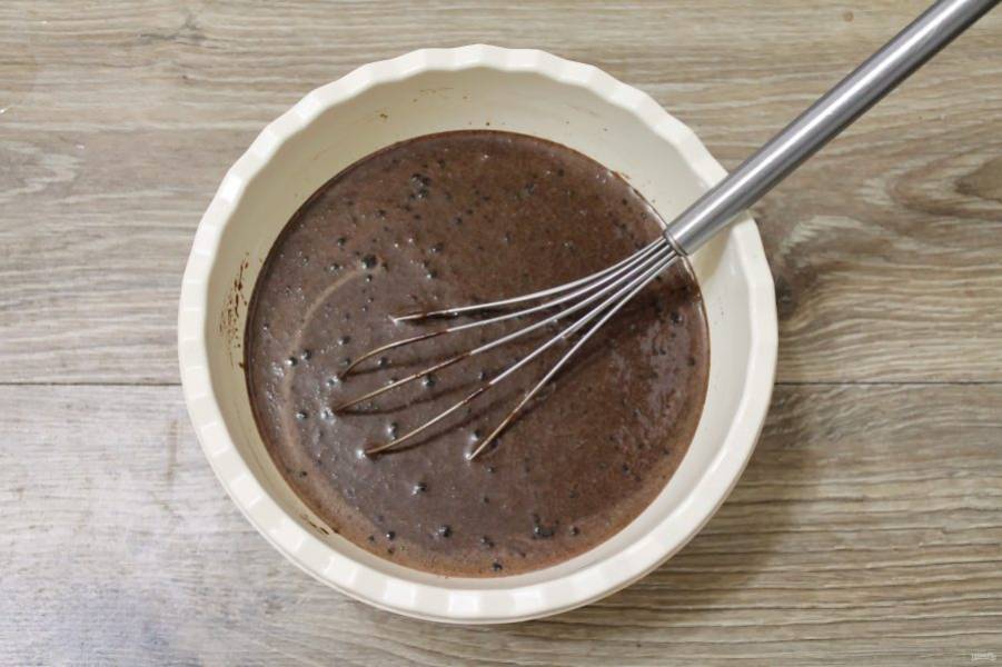 Соедините обе части и взбейте миксером на средней скорости до однородного теста.