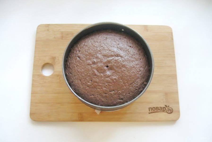 Выпекайте корж в духовке, разогретой до 175-180 градусов 35-40 минут. Готовность проверьте сухой палочкой.