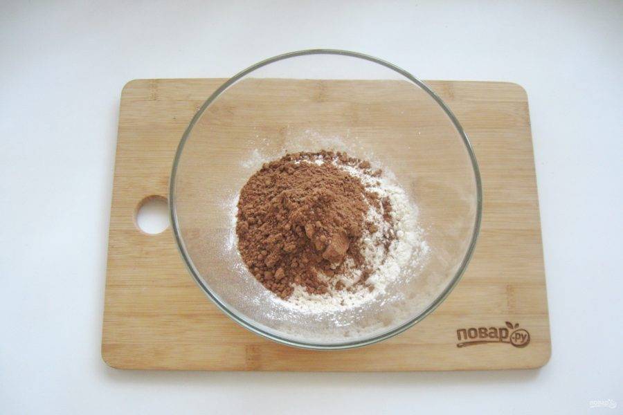 В миску насыпьте муку и какао-порошок.