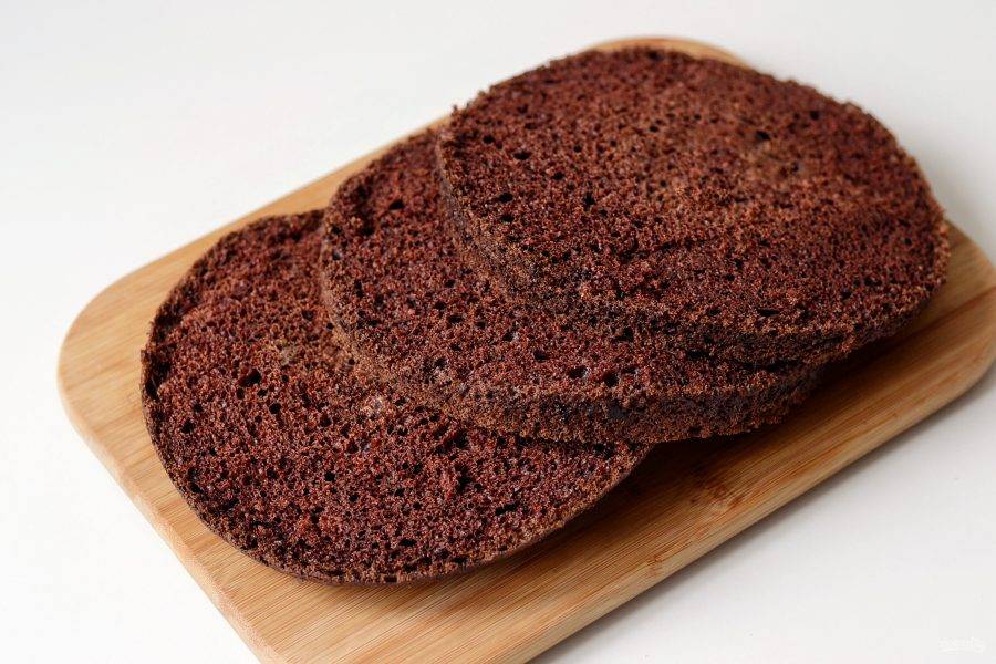 Перелейте тесто в форму для выпечки. Выпекайте бисквит 40-50 минут в заранее разогретой до 180 градусов духовке. Готовый бисквит остудите в форме 30 минут, затем аккуратно достаньте.