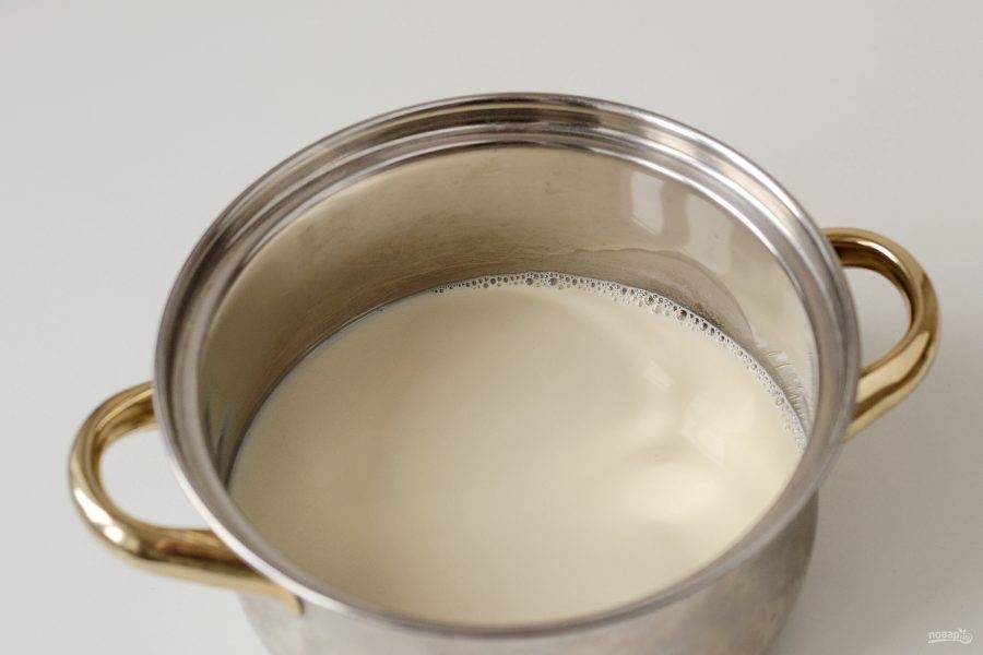 Для крема соедините молоко и сахар, поставьте на средний огонь.