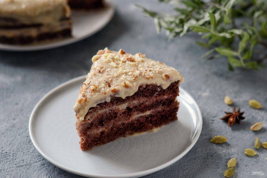 Шоколадный торт с кардамоном готов. Приятного чаепития!