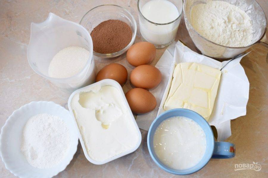 Для приготовления торта подготовьте все необходимые ингредиенты.