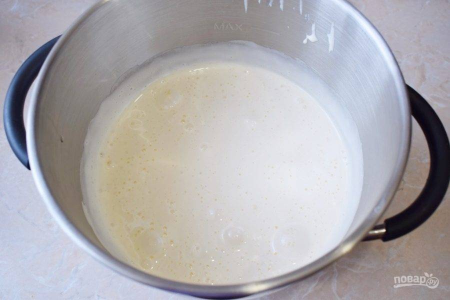 Для бисквита взбейте яйца с сахаром в пышную массу в течение нескольких минут.