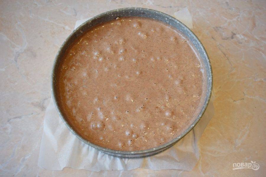 Готовое тесто перелейте в форму для выпечки диаметром 20 см. Поставьте в духовку разогретую до 180 градусов на 45-60 минут.