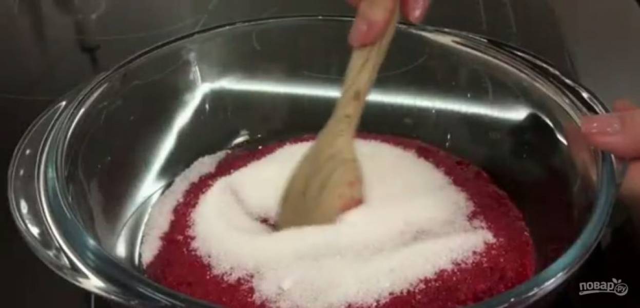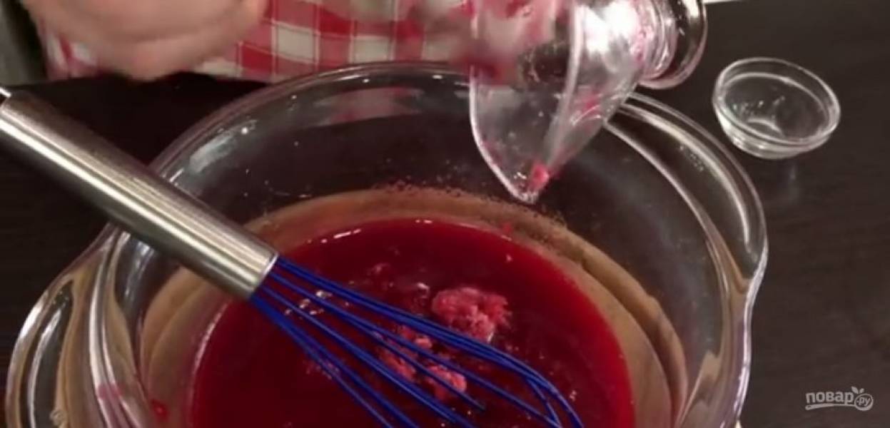 1. Приготовьте мармелад: малину отправьте в блендер, измельчите в пюре, добавьте сахар и поставьте на огонь. Прогрейте, чтобы сахар растворился. Пропустите малину через сито, чтобы получился джем.